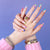 Apply adhesive tab to the natural nail, press and smooth and peel off film. Align nail with the cuticle and press down firmly starting in the middle, then on each side.